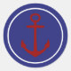 Red Anchor on Nautical Blue Background Classic Round Sticker