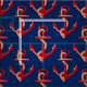 Red Anchors Nautical Pattern on Dark Blue Fabric