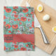 Red and Aqua Poppies Pattern Personalised Tea Towel