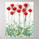 Red and Aqua Poppies, Watercolor Flowers Wall Poster