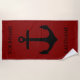 Red and Black Anchor Custom Name and Last Name Beach Towel