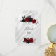 elegant black and red flowers with some beautiful grey leaves botanical wreath on a marble background thank you card