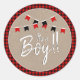 Red and Black Buffalo Check It's A Boy Baby Shower Classic Round Sticker