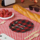 Red and black buffalo Happy Holidays in snow Paper Plate