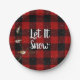 Red and black buffalo Let It Snow snowflakes Paper Plate