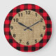 Red and Black Buffalo Plaid Burlap Circle Large Clock