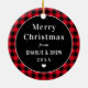 Red and Black Buffalo Plaid Custom Holiday Photo Ceramic Tree Decoration