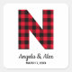 Red and Black Buffalo Plaid Monogram N Square Sticker