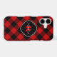 © 2020 Socialite Designs. Red and black buffalo plaid mobile phone case with a text banner for your name and monogram.