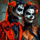 Red and black caricature Dia de los Muertos Couple in red attire. Add a touch of the macabre to your next event with this hauntingly beautiful invitation. Featuring a couple dressed in traditional Día de los Muertos attire, this invitation is perfect for Halloween parties, gothic gatherings, or any occasion where you want to add a touch of the spooky.