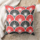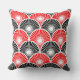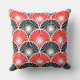 Red and Black Chinese concentric Semi Circle Wave pattern cushion