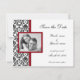 Black Damask Save the Date cards with a red frame around your photo. Formal cards with envelopes included.