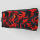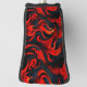 This golf head cover has a red and black design on it.