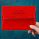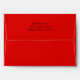 This A7 size envelope has a customisable red outside colour with black inner colour. The return address is on the back top flap in black lettering that can also be customised how you want.
