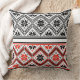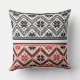 Red and Black Folk Art Geometric Pattern Throw Cushion