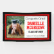 Hang this Red and Black Grad Photo Banner to celebrate your high school or college graduate. Personalise with your graduate's photograph, full name, class year, and school. It features a black and red border surrounding your grad's picture, their name in red and 'Congrats Grad!', class year, and school in black.