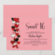 Red and Black Heart Theme Sweet 16 Birthday Invitation