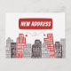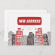 Cartoon style pattern with red and black retro buildings for a very exclusive new address announcement.