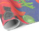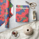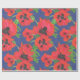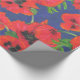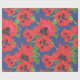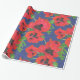 Red and Black Oriental Poppies Pattern on Blue Wrapping Paper