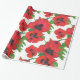 Red and Black Oriental Poppies Pattern on White Wrapping Paper