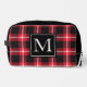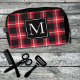 Red And Black Plaid Plaid Monogrammed Custom Toiletry Bag. Ready to be personalised with your initial. Perfect gift for Dad, Grandpa etc.