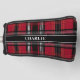 Destei's original plaid / tartan pattern featuring the colours red, black, grey and white. There is also a personalizable text area for a name.