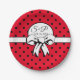 Red and Black Polka Dot White Bow Personalised Paper Plate
