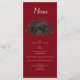 Our black and red floral rose gothic wedding menu are made to match out Gothic Red & Black Rose Wedding Collection. Dark black and deep red contrast with an abundance of dark floral motifs. Script font paired with serif font, lends to an artistic look that matches well with gothic style.