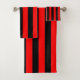 Alternating red and black vertical stripes are tiled across this towel set to add style to your bath decor! A uniquely stylish way to start your day!