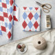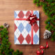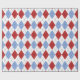 Elegant wrapping paper for weddings, birthdays, and more featuring a red and blue argyle pattern.