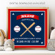 Red and Blue Baseball Bats and Balls Birth Stats Poster
