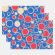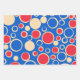 Gift Giving Wrapping Paper Flat Sheet Set Of 3 printed with Red And Blue Dots On Blue and creamy tan natural wood colour background artwork design illustration by TheFabricSeal at Zazzle. #ZazzleMade https://www.zazzle.com/store/thefabricseal