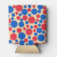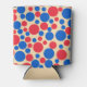 Red And Blue Dots On Tan Can Cooler