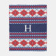 Red and Blue Fair Isle Nordic Argyle Monogram Fleece Blanket
