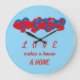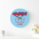 Red and Blue Love Hearts on light blue background Large Clock
