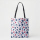 Tossed multi-directional pattern with different sizes of USA American Old Glory flag red and blue stars set on a solid white background. This design has a fixed background, but the size and position of the pattern can be changed. This is a proud patriotic 4th of July Independence Day pattern that will look great on any day of the year as well.