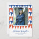 A modern graduation announcement to celebrate a special milestone! This graduation announcement design features watercolor red & blue bunting flags and a placeholder for your photo. © 2021-Present | The Spotted Olive™ | All Rights Reserved.