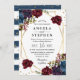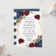 Red and Blue Winter Flowers Gold Frame Wedding Invitation