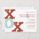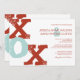 This red, white, and teal blue modern wedding invite features the letters XOX sybolizing hungs and kisses for a whimsical, romantic and chic stylish announcement. The bold look gives this spring wedding invitation a fun and artistic feel and can also be used for bridal shower or wedding shower invites and vow renewal and anniversary party invites.
