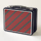 Red and charcoal five stripe pattern metal lunch box
