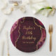 This elegant and glamourous birthday plate features a red agate marble background with faux gold glitter accents. The text combines handwritten script and modern sans serif fonts for a classy and sophisticated look. This will be perfect for autumn fall and winter birthday parties.