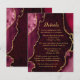Celebrate every detail of your wedding with this burgundy red and gold agate marble details card. Rich wine and crimson hues, organic stone textures, and shimmering gold accents combine to create a sophisticated, jewel-toned design that complements a modern, elegant, or glamorous celebration. The striking contrast of burgundy red and metallic gold provides a polished backdrop for sharing both reception and lodging information, keeping your guests informed in style. Fully customizable with your event schedule, hotel details, and special notes, this agate-inspired card adds a cohesive and refined touch to your wedding stationery suite, perfect for fall or winter weddings.
