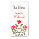 A custom bookplate label with vintage and open-face blackletter and antique art of daisies and curling leaves in red and golds, restored from an antique manuscript.