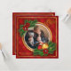 A luxurious Christmas card with a round photo window framed with gold scallops and trimmed with clusters of pine, poinsettia and ornaments. The background is a red on red argyle pattern. (<a href='http://www.freepik.com/free-photo/parents-with-a-dog-and-a-baby-with-a-christmas-tree-background_979458.htm'>Designed by Freepik</a>). (<a href='http://www.freepik.com/free-vector/christmas-background-with-flowers-and-baubles_984449.htm'>Designed by Freepik</a>). <br/><br/>The card is easy to customise with your wording, font, font colour, paper shape options and choice of six paper types.<br/><br/>Not exactly what you're looking for? All our products can be custom designed to meet your needs at no extra charge.<br/><br/>Simply contact us at heartfelthelper@gmail.com<br/><br/>Coordinating products available: Just ask us!