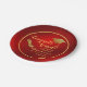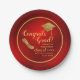 Create personalised red and gold graduation paper plates for the class of 2025 graduate with a Congrats Grad saying, and graduate's cap and diploma illustrations. Template makes it easy to type the grad's name, year and school name.