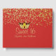 Colourful Sweet 16 party guest book done in a red background, with graphics of a gold looking crown and glitter along the top. Personalise the text fields for your special day.