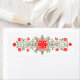 A label with an antique vintage printers mark etching with a decorated shield and a a floral design of daisies and curling leaves in red and golds, restored from an antique manuscript