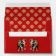 Red and gold Indian wedding elephants matching envelope. Classical traditional Hindu wedding invitation cards suite addressed wedding envelope