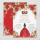 Red and Gold Floral Masquerade Ball Quinceañera Invitation