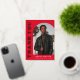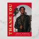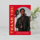 Stylish and trendy graduation thank you card featuring the graduate's photo on the front with an offset arch photo frame. "Thank You" is displayed in gold foil retro lettering on a red background. Personalize the front of the arch photo graduation thank you card by adding the graduate's name, school, and graduation year. The card reverses to display your typed or handwritten message. The red and gold foil graduation thank you card is perfect for both high school and college graduates.
